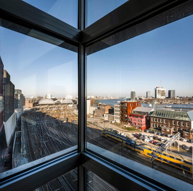 Created between 1831 and 1832, Oosterdok is a former wet dock in Amsterdam. It came about from the construction of the Oosterdoksdam and Oosterdoksluis, which formed a deep port offering shelter from the tidal river IJ. Today, Oosterdok is a thriving hub that combines city vibes with stunning river views. Set amidst all of this, Track offers the enjoyment of Amsterdam dock life and so much more. Having a prime location within a vibrant, innovative city means Track can provide every possible convenience. The nearby railway station offers frequent, rapid connections to both Europe and the world, keeping it open for business – anytime.