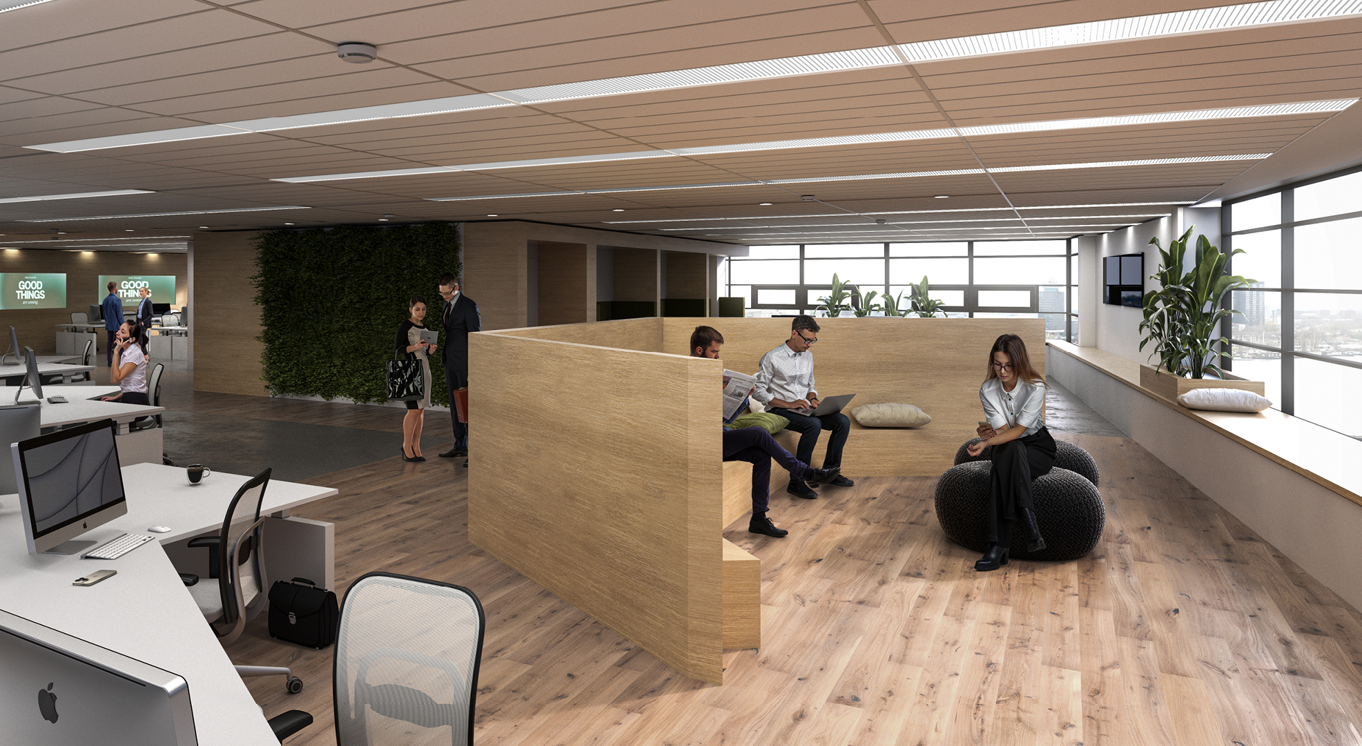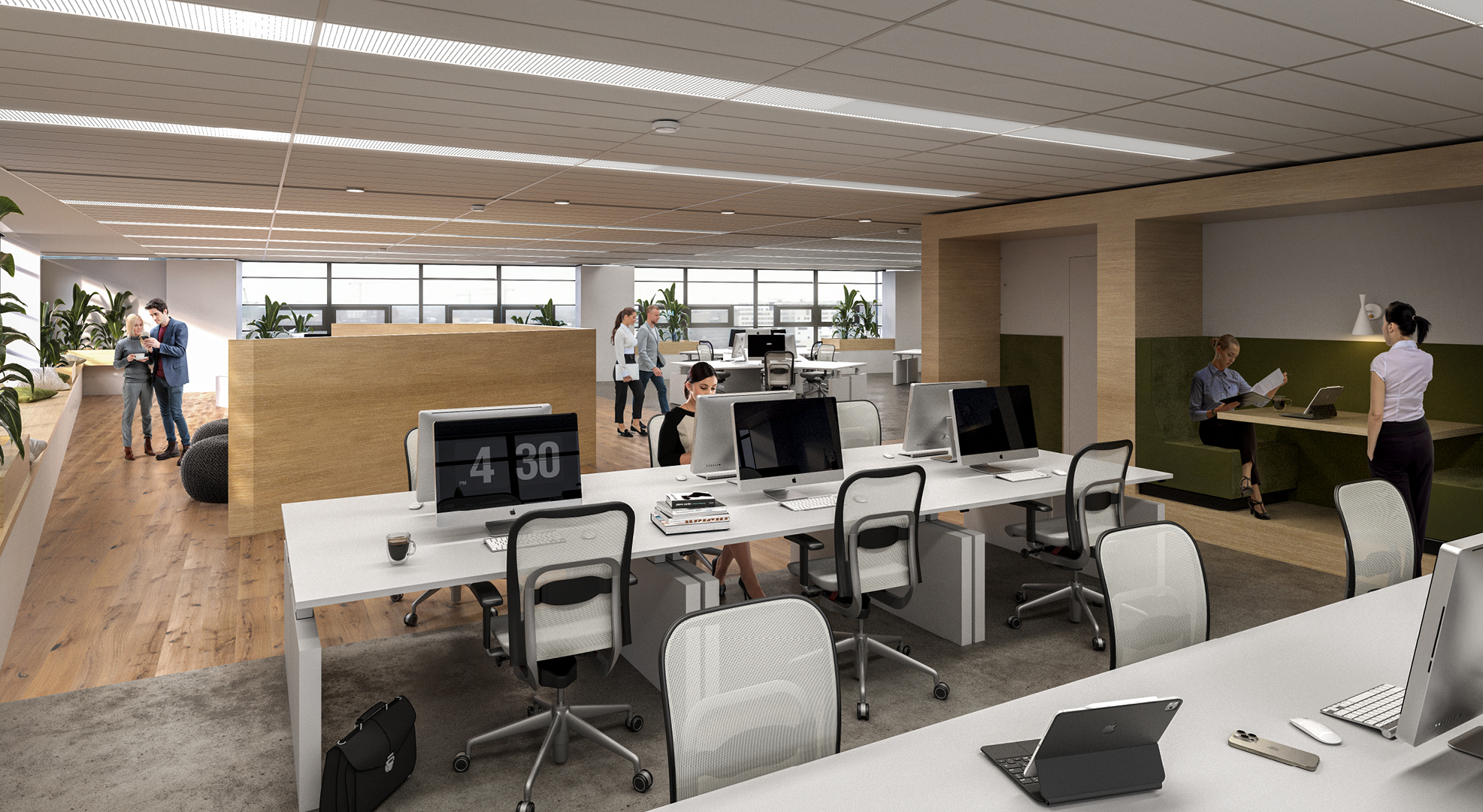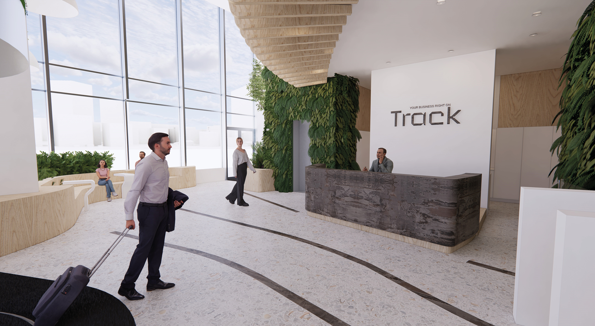 Bright spaces and wonderful riverbank views will promote wellness and relax the mind. A variety of set-ups are possible at Track. Each area is designed to maximize employee wellbeing, and the right workspace is achievable for any purpose. A mix of large, open office floors will incorporate clever design and the latest technology. There is also flexibility on how floorspaces are divided, to maximize efficiency. It is possible to create private rooms for calls or meetings, or chic collaborative spaces. People will be able to select one of the quieter zones to unwind and reflect.